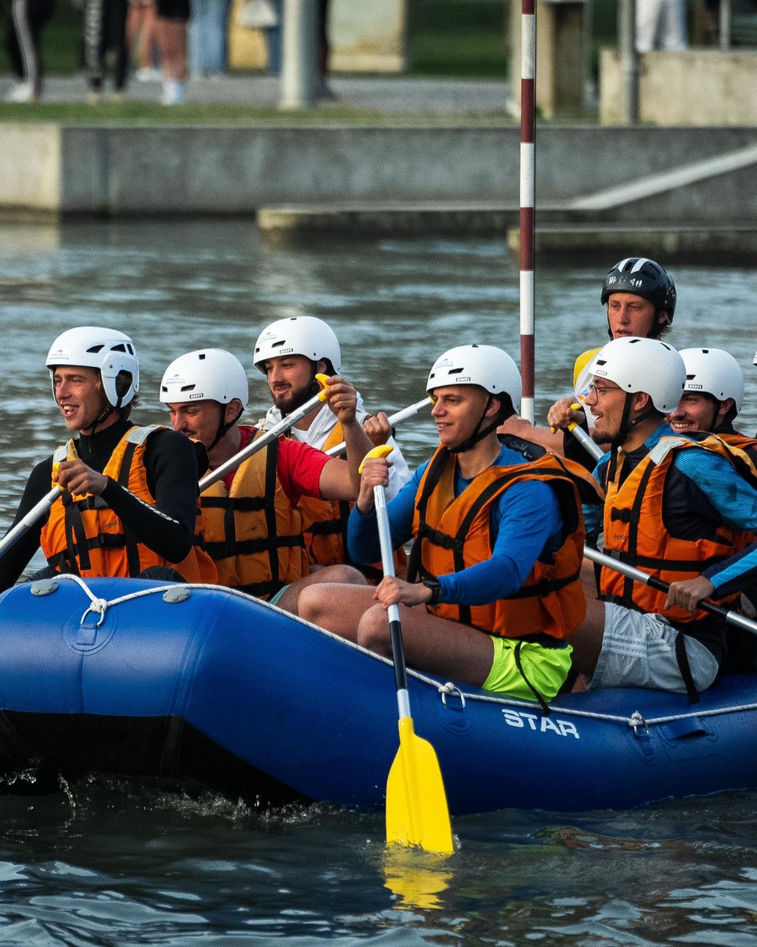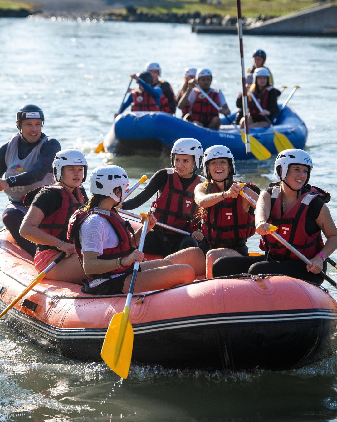 على الرغم من برودة الجو في الصباح الباكر، لم يثبط ذلك من عزيمة طلابنا، الذين كانوا مستعدين لمواجهة تحديات ملعب «ستاد ديز أو فيف»! منذ الساعة 8:30 صباحًا، بدأت أولى جولات التجديف، حيث سعت كل فريق إلى تحقيق أفضل توقيت. لكن المغامرة لم تتوقف عند هذا الحد: فقد أضفت أنشطة مثل كرة القدم المصغرة العملاقة، والمبارزة البشرية، والهدف العملاق، ومنصة الرماية Nerf الحيوية على اليوم على منشآتنا القابلة للنفخ.